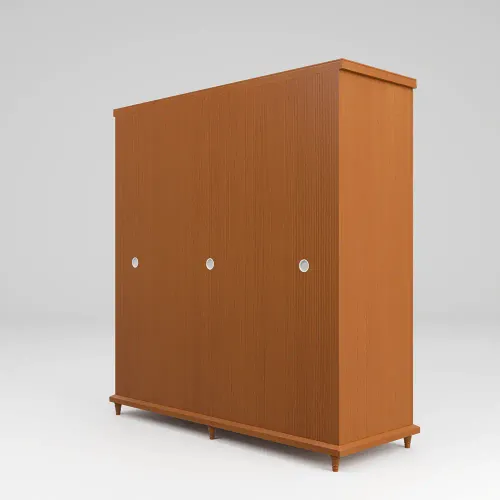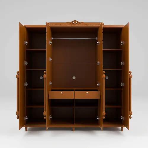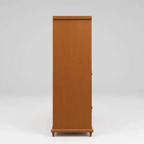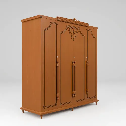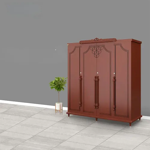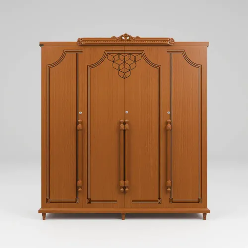 A wooden almirah is a storage unit made primarily of wood. It is typically constructed using high-quality solid wood or imported beech wood, such as plywood or medium-density fiberboard (MDF). The grain patterns, textures, and finishes of wooden almirahs contribute to their aesthetic appeal, creating a timeless and classic look. Its anatomy description is 4 shutters with an attractive wooden handle design, slat, inside small 2 drawers, shelf & hanger. High-quality environment-friendly Lacquer in Light color (outside & inside) finish. Imported high-quality rust-free hardware fittings. Most of our furniture is made of natural components, which will have natural differences in grain construction and occasional minor blemishes.