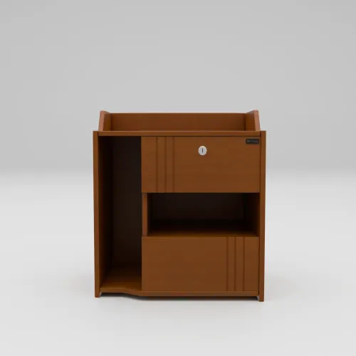This bedside table is made from high-quality imported beech wood and exudes a natural charm and warmth that complements various interior styles. Whether it features a rustic, modern, or traditional design, the wooden texture and grain patterns add character and a sense of coziness to the bedroom. There are 2 design drawers, of which 1 is a lock drawer. High-quality, environment-friendly Lacquer in Light color (outside & inside) finish—imported high-quality rust-free hardware fittings.