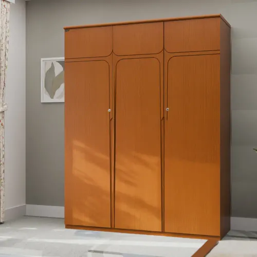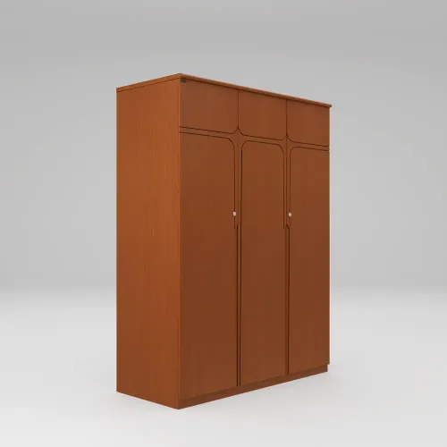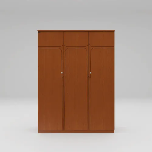 A wooden cupboard is a storage unit made primarily of wood. It is usually made using high-quality veneer processed wood and imported beech wood, such as plywood or medium-density fiberboard (MDF). The grain pattern, texture, and finish contribute to their aesthetic appeal, creating a timeless and classic look. Its anatomy description has a shelf for storing items, which is covered with 3 shutters. Inside are 2 small drawers with locks, and on the right side is a large hanger zone for hanging clothes. High-quality, Eco-friendly lacquer finish (exterior and interior) in light colors. Imported high-quality rust-free hardware fittings. Most of our furniture is made of natural materials, which will have natural variations in grain and occasionally minor blemishes.