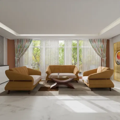 This Sofa is beautiful in your living area, its design and structure are elegants and contemporary. This sofa's anatomy description is 55-inch width, 35-inch depth, and 4-inch soft foam coverage by high-quality fabrics. Unique Stitching Has Been Added to the couch, which makes it even more attractive. This sofa is crafted from high-quality, durable imported beech wood and processed wood, which ensures both aesthetics and durability. It is maded completely agronomically. If u want to customize this product, it's easy. This upholstered sofa offers comfort to the body, making it perfect for lounging and relaxation. The sofa exudes a timeless charm that adds warmth and sophistication to the living space. The backrest provides support for your back while sitting. It can be cushioned or firm, and its height and angle can affect overall comfort. The legs or base elevate the sofa off the ground, which is made from wood.