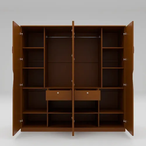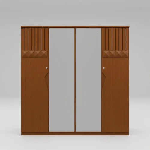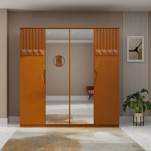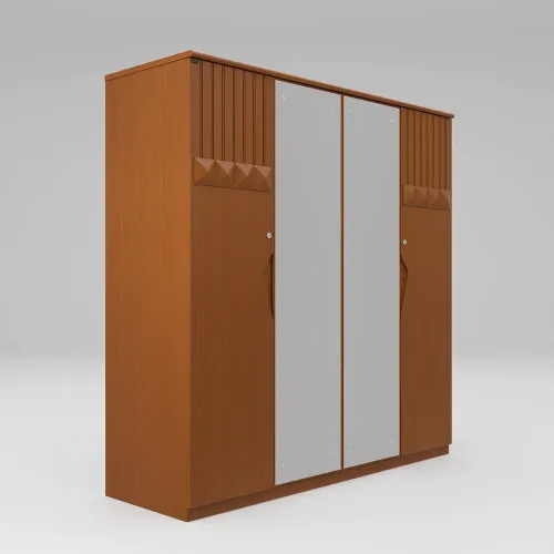 A wooden cupboard is a storage unit made of wood. It is usually made using high-quality veneer processed wood and imported beech wood, such as plywood or medium-density fiberboard (MDF). The grain pattern, texture, and finish of the wooden cupboard contribute to its aesthetic appeal, creating a timeless and classic look. Its anatomical details are that it has several shelves for storing things, which are covered with 4 shutters. The middle 2 shutters are provided with full-height 5mm mirror glass, which will give you a beautiful solution for complete viewing as well as making your room much more aesthetic. The 4 shutters are provided with 2 locks, which increase the functionality of using the 2 sides separately. Inside, there are 2 small drawers with locks, the middle 2 sides have 2 hanger zones for hanging clothes. High-quality, eco-friendly lacquer finish in light colors (external and internal). Imported high-quality rust-free hardware fittings. Most of our furniture is made from natural materials, which will have natural variations in grain and occasional minor blemishes.