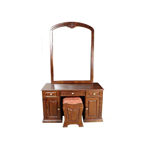A dressing table exudes timeless elegance and natural beauty. The dressing table's design prioritizes functionality and practicality. It typically comes with a large, adjustable mirror allowing easy viewing from different angles while getting ready. There is 1 big-size drawer, 1 long mirror glass with an attractive design frame, a back side storage body, and front a wooden shutter with lock, features an elegant and timeless design, blending both traditional and contemporary elements. High-quality environment-friendly Lacquer in Light color (outside & inside) finish. Imported high-quality rust-free hardware fittings.