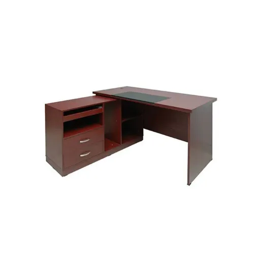- This Table has one side rack on the left side where used two big drawers, one open chamber, two open shelves, and one keyboard tray.