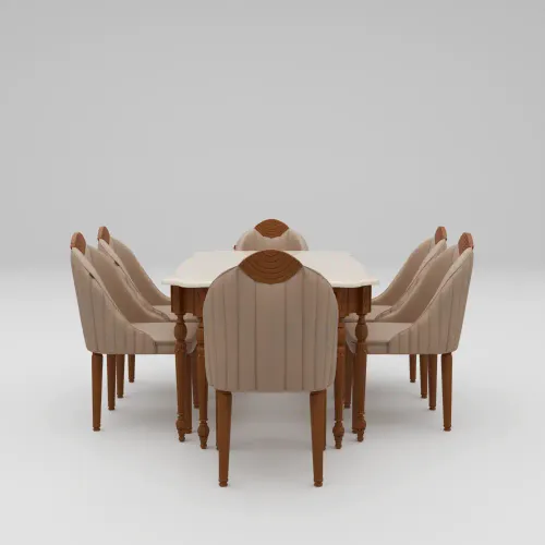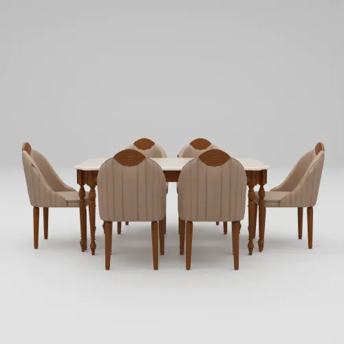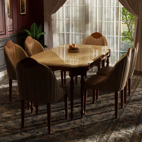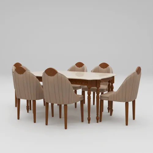 Introducing a shahenshah dining table for the dining space. The dining table is made using imported beech wood which has been carefully selected for its durability and beauty. The table legs and side rails have beautiful CNC designs which make the table attractive. The table top is made of luxurious marble. This dining table is ergonomically designed to provide optimum comfort and support. It uses a light-colored eco-friendly PU lacquer finish. Imported high-quality rust-free hardware has been used for durable and strong fittings. The color of the product is customized as per the buyer's demand. Most of our furniture is made of natural materials, which will have natural differences in the grain structure and occasionally have small blemishes.