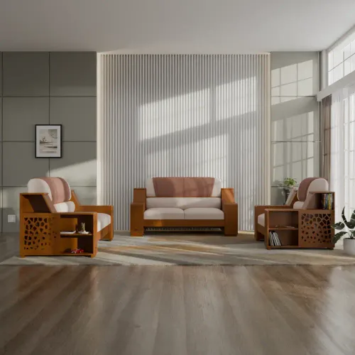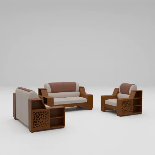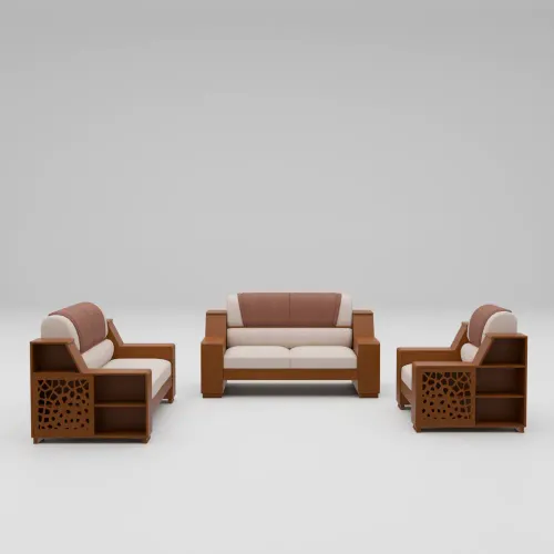 This Sofa is made from imported Oak/Beechwood & veneered processing wood, including an innovative CNC cutting design. Here, the best quality environment-friendly PU lacquer polish, as Light, Antique & Natural, is available for customers. High-quality rubber foam & Quality Fabrics upholstery as well.
