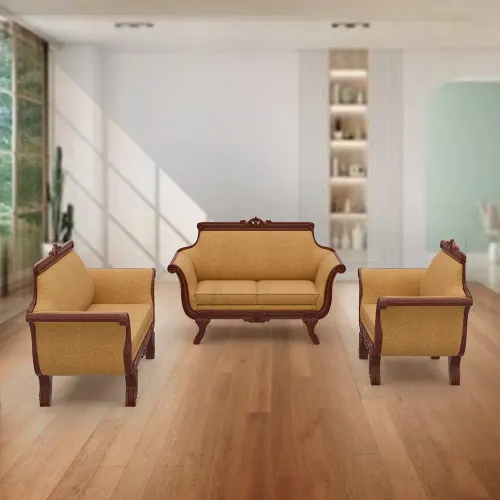 Introducing the Sunflower Sofa, a classic and luxurious masterpiece designed for comfort and opulence. With a 2-2-1 sitter arrangement, it accommodates guests in style. Crafted entirely from durable beech wood, this regal sofa exudes elegance. The sitting area and plush pillows are upholstered with excellent fabric, ensuring both comfort and sophistication. Elevate your living space with the Sunflower Sofa, where relaxation meets royal charm.