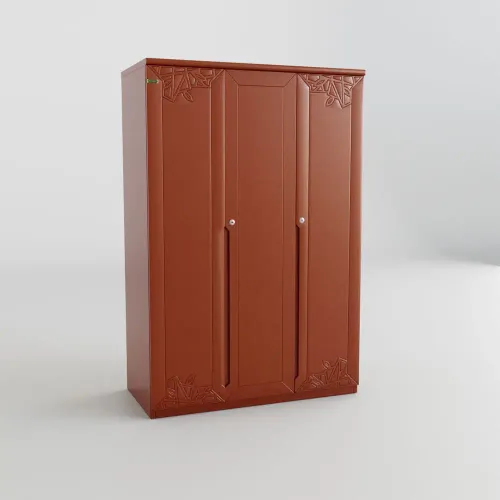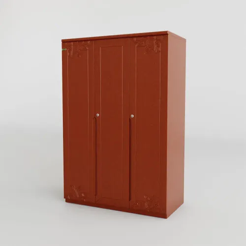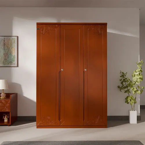 A wooden almirah is a storage unit made primarily of wood. It is typically constructed using high-quality vineer process wood & imported beech wood, such as plywood or medium-density fiberboard (MDF). The grain patterns, textures, and finishes of wooden almirahs contribute to their aesthetic appeal, creating a timeless and classic look. Its anatomy description is 3 shutters with a wooden handle design, slat, inside small 2 drawers, shelf & hanger. High-quality environment-friendly Lacquer in Light color (outside & inside) finish. Imported high-quality rust-free hardware fittings. Most of our furniture is made of natural components, which will have natural differences in grain construction and occasional minor blemishes.