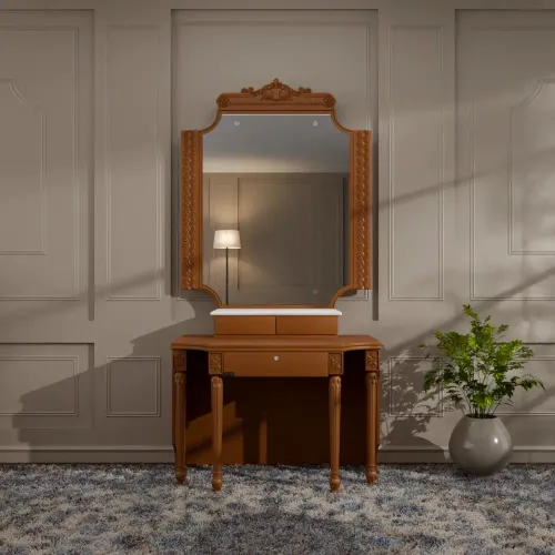 - A dressing table exudes timeless elegance and natural beauty.