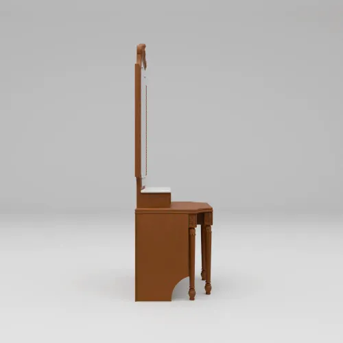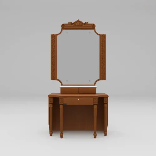 A dressing table exudes timeless elegance and natural beauty. The dressing table's design prioritizes functionality & practicality. It typically comes with a large, adjustable mirror allowing easy viewing from different angles while getting ready. There is 1 big-size drawer, 1 long mirror glass with an attractive design frame, a backside storage body, a front wooden shutter with lock, featuring an elegant and timeless design, blending both traditional and contemporary elements. High-quality, environment-friendly Lacquer in Light color (outside & inside) finish. It imported high-quality rust-free hardware fittings.