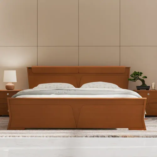 Introducing a simple and stylish bed that is perfectly crafted. The design of this contemporary bed is the perfect blend of aesthetics and functionality. The bed is made using high-quality imported beech wood and veneer-processed wood that has been carefully selected for its durability and beauty. This bed is ergonomically designed to provide optimum comfort and support. This wooden bed is a perfect choice for a visually pleasing and comfortable sleeping solution. The color of the bed can be customized as per the buyer's needs. The wood and board used in the product are processed with high-quality chemicals so that it is not affected by termites and fungus, and the product is more durable. With organic design, ergonomic features, and high-quality imported hardware. A 4" thick mattress is available with this bed. A high-quality metal structure has been used on the inside of this bed, increasing the bed manifold's durability.