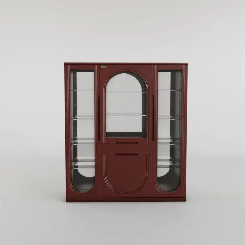 This showcase is made from high-quality imported beech wood & vineer process wood. Its anatomy description is 1 long shutter with an attractive CNC design and a clear glass attached. Showcase inner side 3 glass shelves are there, such as ornate moldings and decorative handles, in the showcase. Using transparent glass panels allows for a clear view of the items while protecting them from dust. Imported high-quality rust-free hardware fittings. High-quality, environment-friendly Lacquer in Light color (outside & inside) finish.