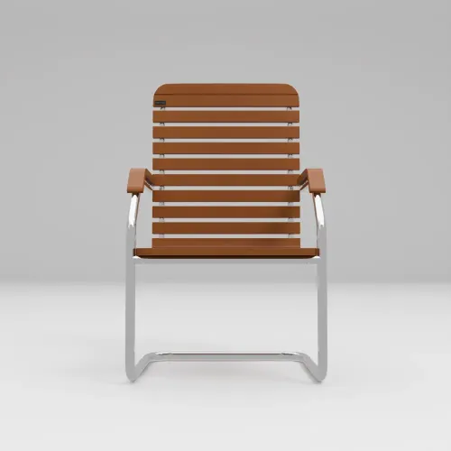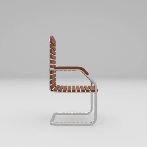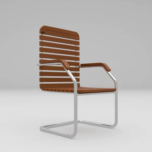 - The chair made from 15 mm thick beach veneer wood & 19 mm dia SS pipe frame with arm.